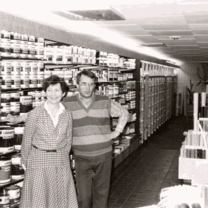 De geschiedenis van ons schildersbedrijf en winkel begon zo’n 90 jaar geleden. Opa en Oma van der Plas zijn gestart in 1929. Opa voor het schilderwerk, oma in een klein winkeltje aan huis met wat verf. Wat ooit begon met een paar bussen verf, wat kwasten en een ladder, alles vervoerd op de bakfiets, is uitgegroeid tot een gerenommeerd ambachtelijk schildersbedrijf. Zoon Piet kwam er vanzelf bij na de schilderschool te hebben afgerond. En hielp zo mee de zaak opbouwen. De winkel werd beetje bij beetje uitgebreid en later gerund door Corrie, de vrouw van Piet.