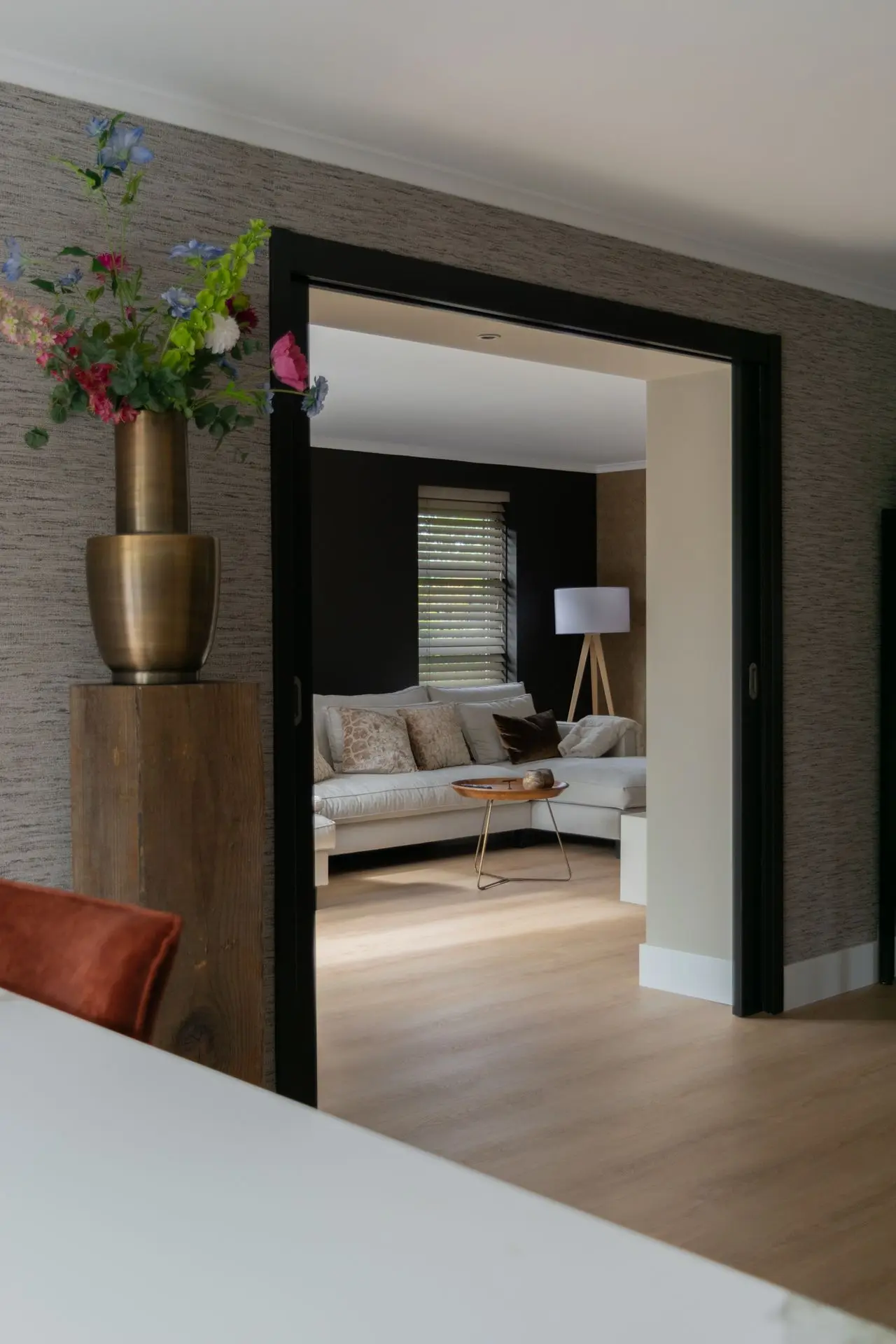 Bij deze woning mochten we een plan maken voor de wandafwerking en de raamdecoratie.