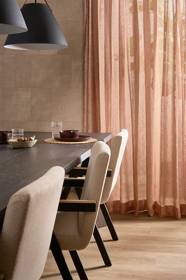 In de eetkamer is het belangrijk om raamdecoratie te kiezen die zowel privacy biedt als voldoende natuurlijk licht binnenlaat. Lichte gordijnen of jaloezieën zijn vaak een goede keuze, maar ook plisségordijnen vormen een stijlvol en praktisch alternatief. Met raamdecoratie bepaal je zelf de sfeer in de eetkamer: warm en geborgen, of juist licht en open. Onze design advisors denken graag met je mee. Kom langs in onze winkel of plan een Design Date voor een persoonlijk advies op maat.