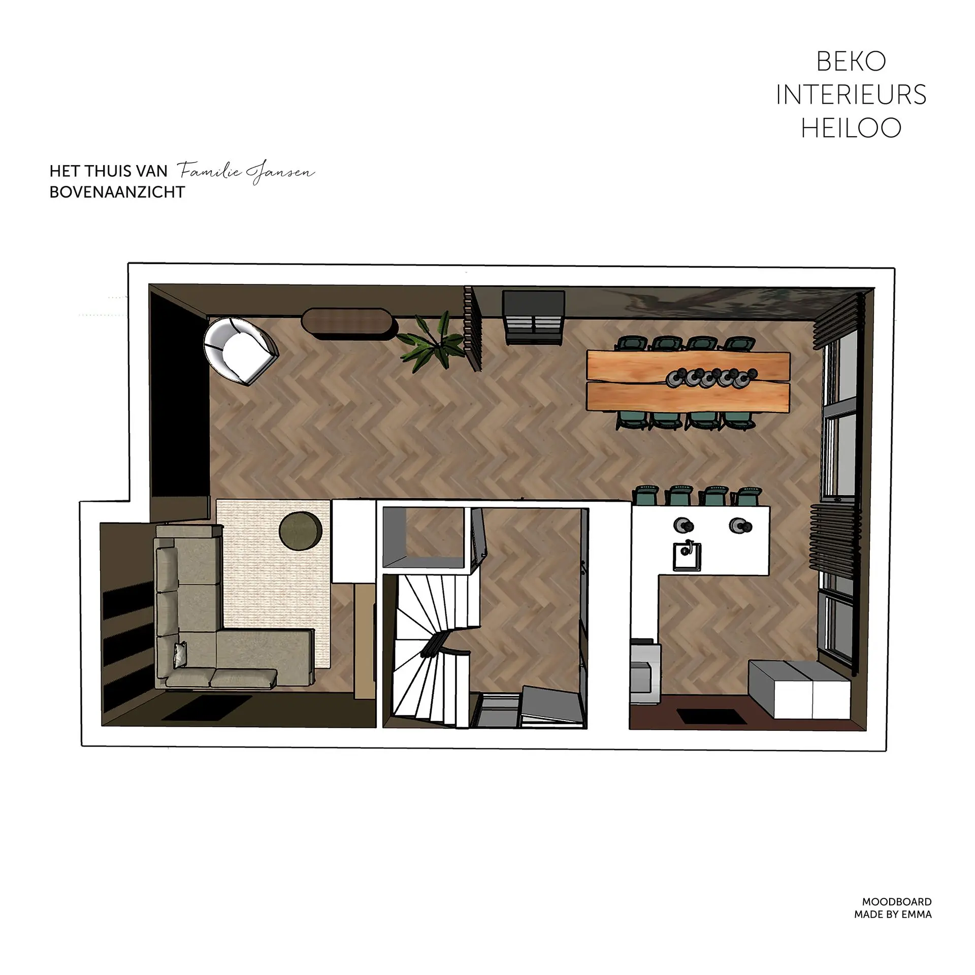Dit ontwerp is gemaakt voor een gezellig, groot gezin. Zij zijn naar een riante 2 onder 1 kap woning verhuisd en wilde de beneden verdieping een make-over geven. Hiervoor schakelde ze Beko Interieurs in.