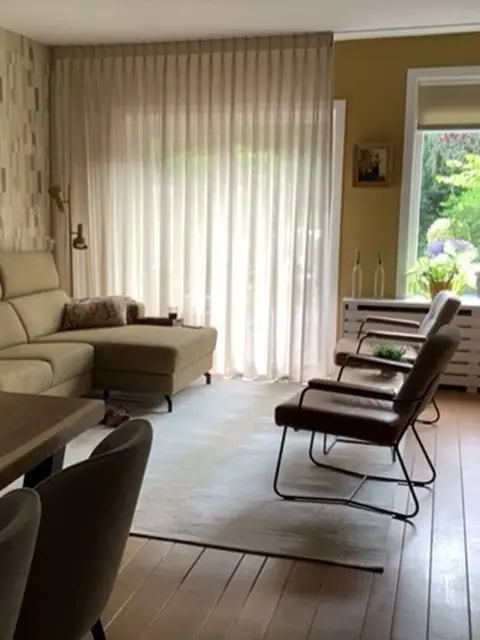 Gitta en Rob kwamen bij ons terecht via een familie lid waar wij ook een interieurplan voor hebben gemaakt. Hoe leuk is dat! Na een leuke eerste kennismaking hebben wij een afspraak gemaakt voor een Design Date bij hun thuis. Tijdens dit gesprek werd duidelijk dat er een Design Advies voor de woonkamer gewenst was. De wens was om meer warmte in huis te brengen met niet te donkere kleuren. Daarnaast moest deze warmte een geheel van de kamer maken met het bestaande meubilair. De bruine duette die er hangt mag vervangen worden, gecombineerd met een nieuw stel inbetween gordijnen. Gitta en Rob gingen zelf shoppen voor een nieuwe bank.