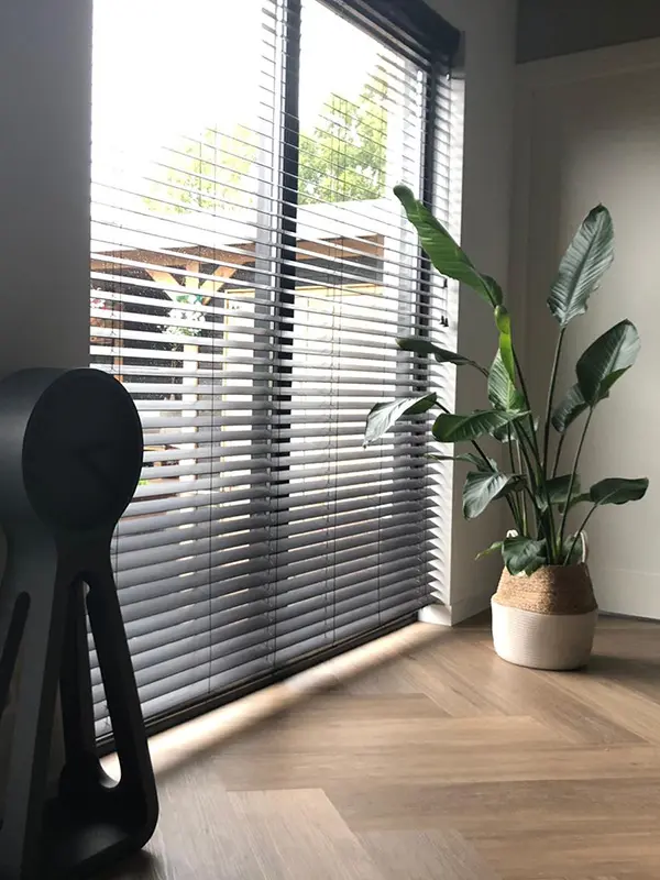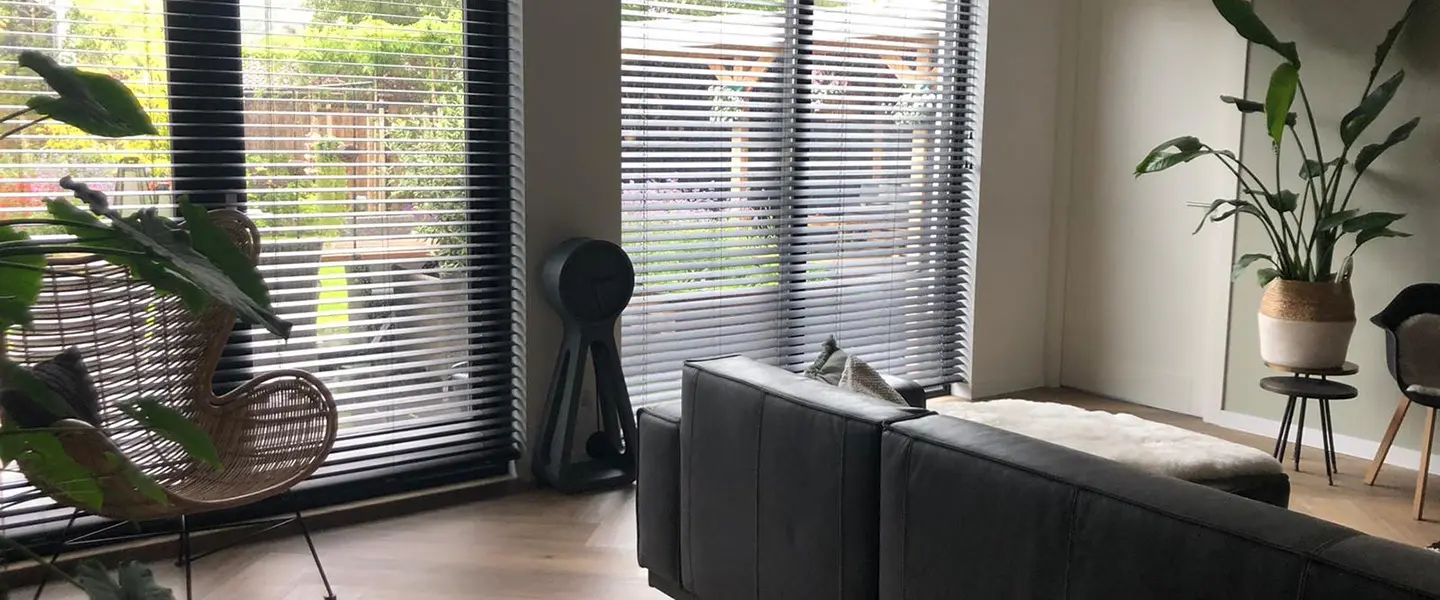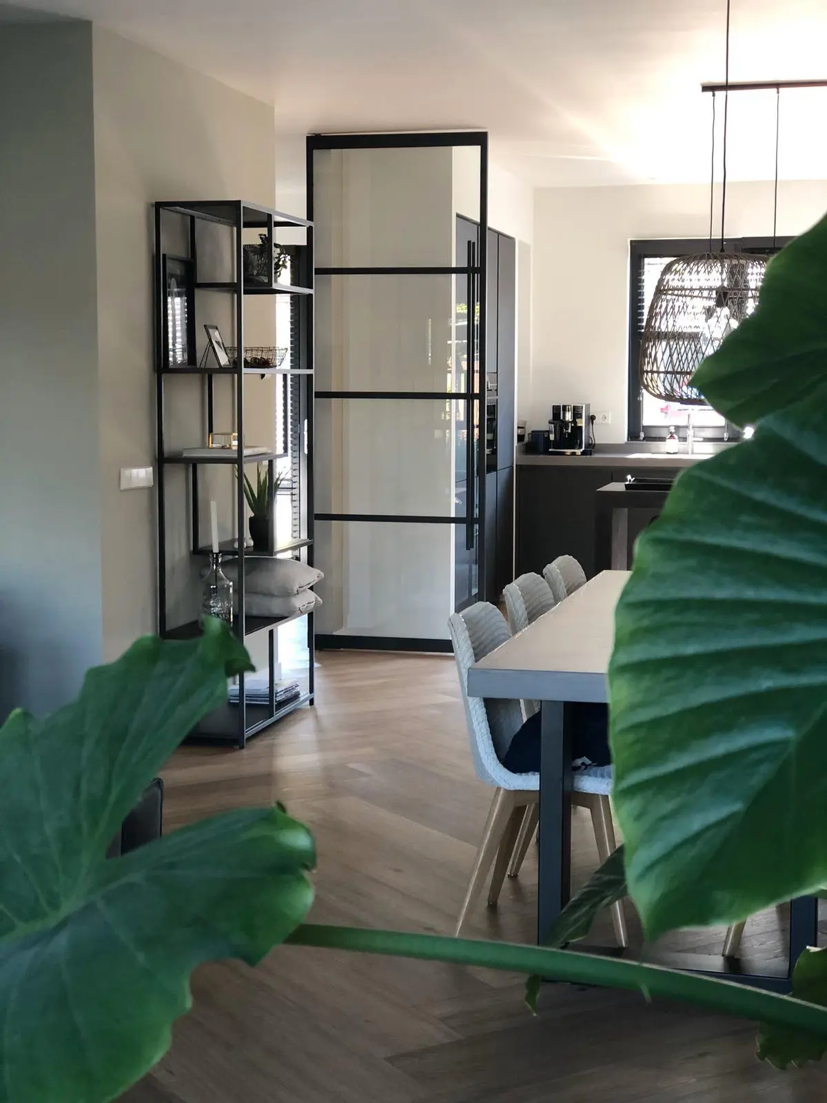 De ramen leenden zich uitstekend voor houten jaloezieën en combineren prachtig met de stoere bank Mark. De meubelen en de hoge stalen deuren geven het interieur karakter.