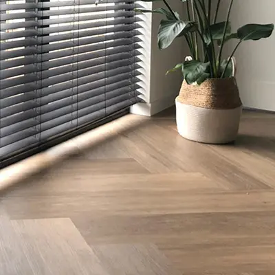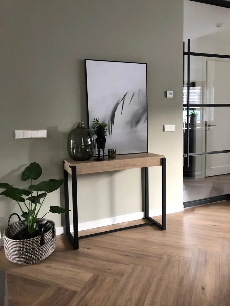 De stoere, brede visgraat PVC vloer Home Made By "Tasman" en de mooie grijs-groene verfkleur Home Made By " Lichen" werden de basis van het interieur van deze woning. Om wat meer rust te creëren, werd dezelfde visgraatvloer op de bovenverdieping gelegd in een recht plankmotief.