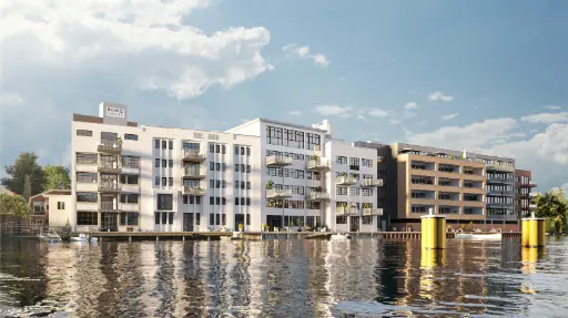 Het monumentale fabriekspand kreeg een tweede leven als thuis voor 21 karaktervolle lofts, allemaal gelegen aan het water. De rauwe charme van de fabriek is er nog altijd voelbaar in de hoge plafonds, robuuste details en stoere materialen. Daarnaast verrees een nieuw gebouw met 74 moderne twee- en driekamerappartementen, deels aan het water en deels aan de levendige straatkant. Zo vormt De Bij een unieke mix van historie, karakter en eigentijds wooncomfort. Ook binnen kreeg De Bij een eigentijdse uitstraling, afgestemd op de bewoners, met oog voor stijl, sfeer en detail.