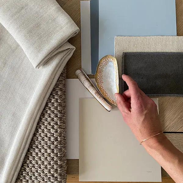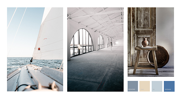Door hun liefde voor het water is gekozen voor blauw, zachtgrijs en zand. Anne is arts en heeft vaak avonddiensten. Overdag wegdromen kan goed met een mooie diep blauwe muur in de slaapkamer. Gordijnen met extra coating om het licht buiten te houden. In de woonkamer komt een zandkleur op de wand. Een groot kleed verbindt de grijze bank en de ecru stoelen. Voor de ramen luchtig los vallende naturelkleurige gordijnen die overdag genoeg licht doorlaten en in de avond de kamer behaaglijk maken. Een oud Hollandse kast wordt geverfd in de kleur zeehond en krijgt een plaats in de keuken. Samen met de strakke keuken en de warme vloer krijgt het geheel een uitnodigende sfeer. Dit is een thuis waar Anne