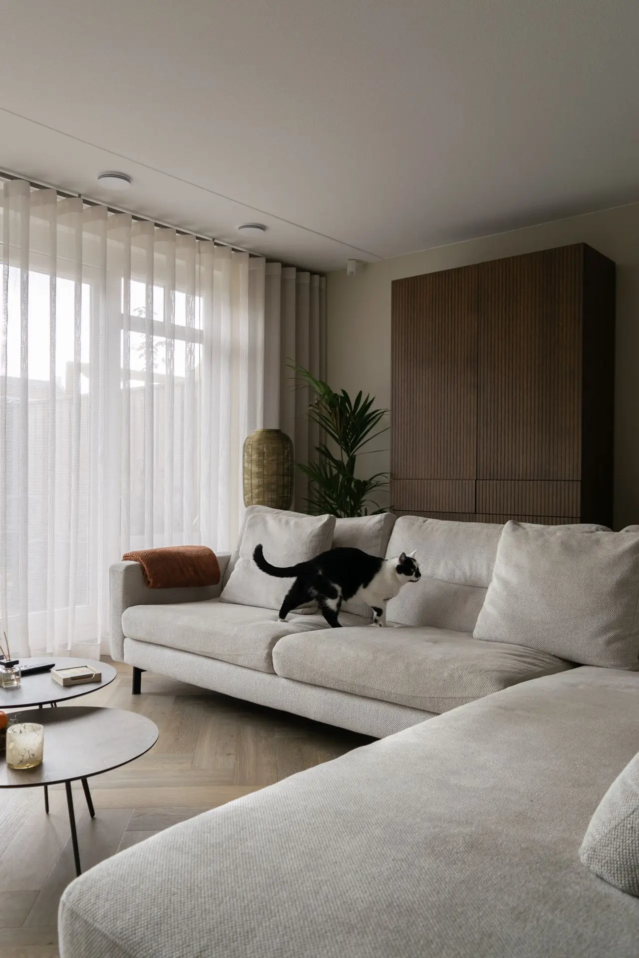 Een nieuwbouw woning wat uit een open woonkeuken bestaat.