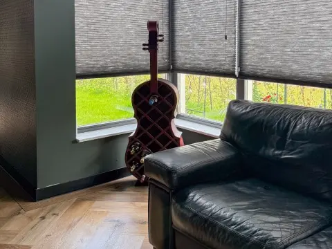 - De lichtinval te versterken met transparante, laaghangende raambekleding in diepe tinten.
